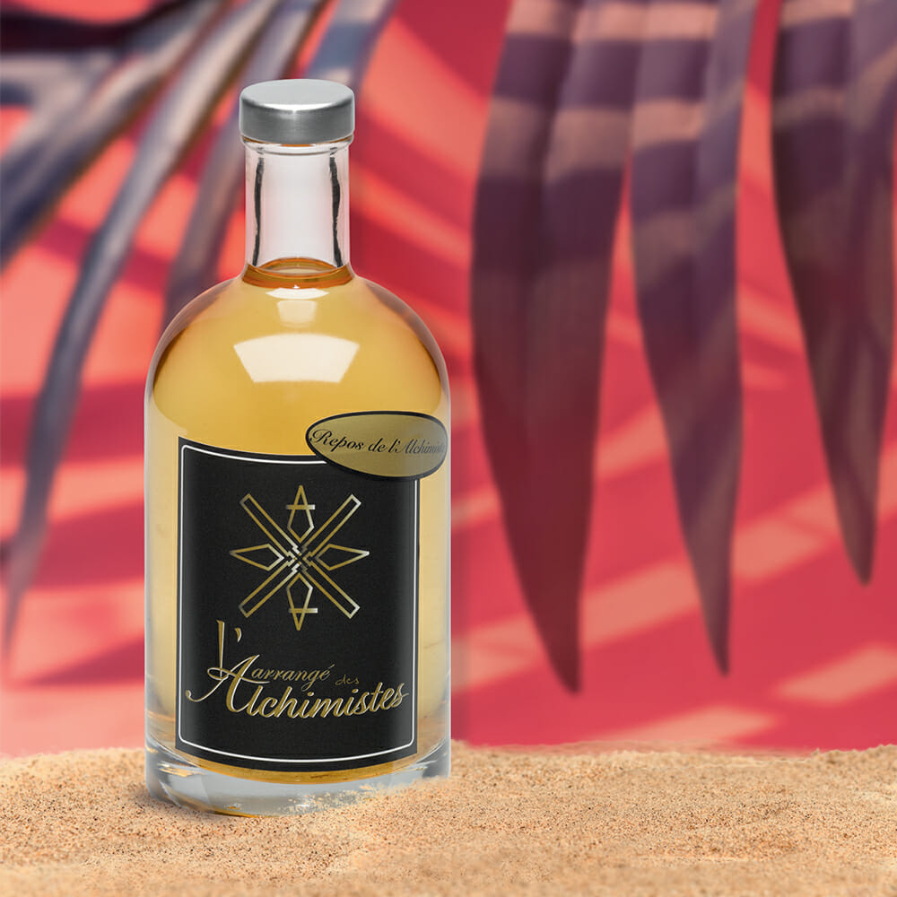 La Feuille de thé vert en provenance de la région du Zheijang en Chine associé au rhum arrangé donne un goût frais et amer. Une belle réussite pour accommoder, les plus exigeants.