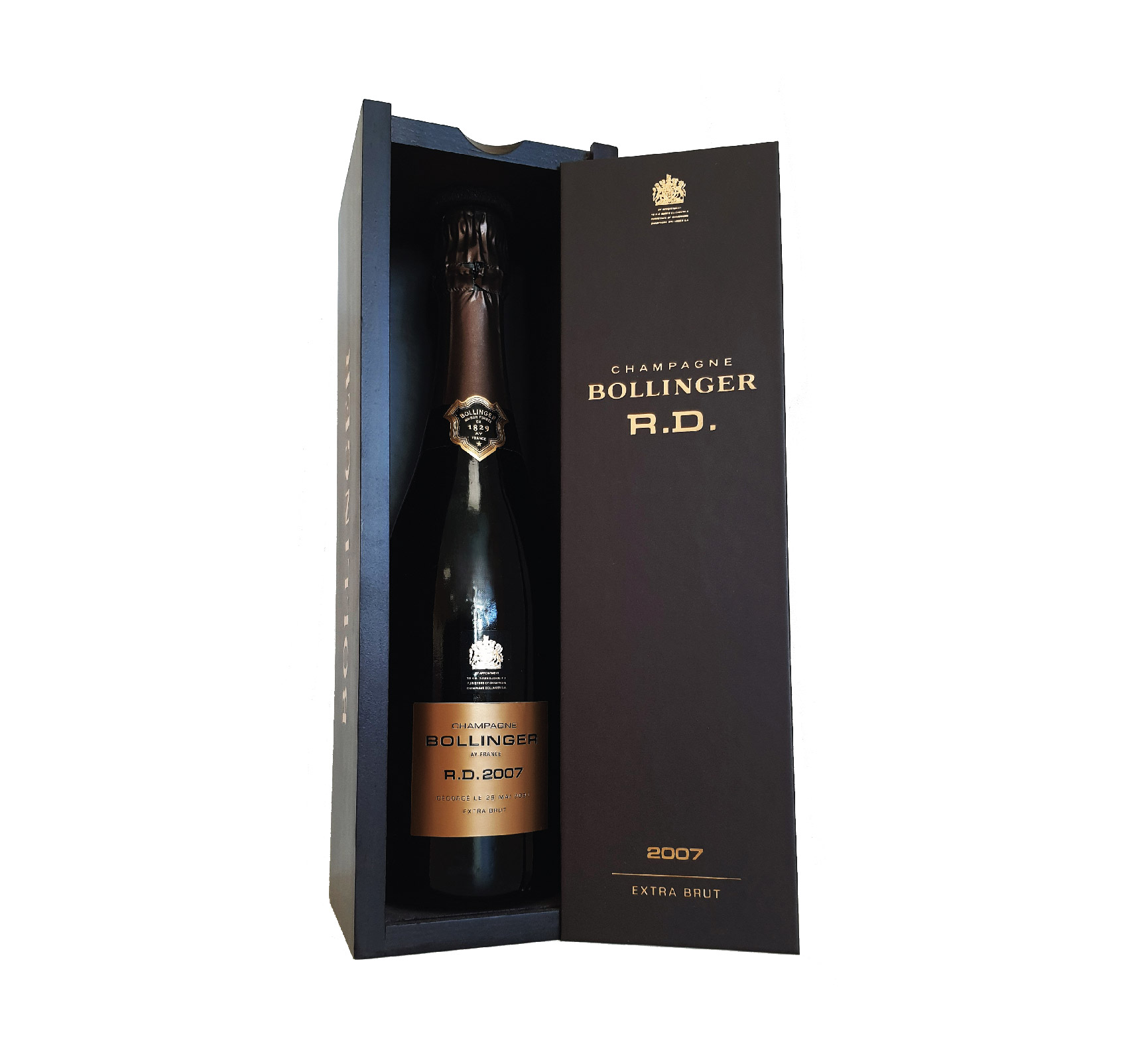 Bollinger R.D. 2007 est un champagne composé de 70% de Pinot Noir et 30% de Chardonnay, avec 91% de Grands Crus et 9% de Premiers Crus.