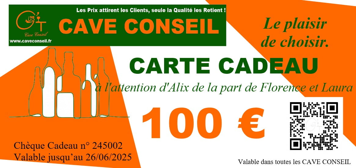 Carte Cadeau CAVE CONSEIL, valable 1 an dans nos 9 CAVE CONSEIL
