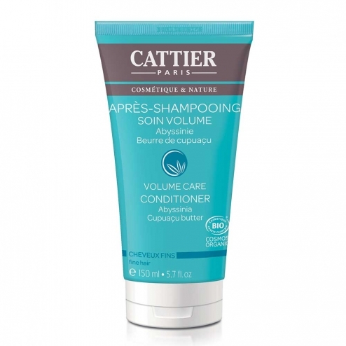 L’après-shampooing Soin Volume Cattier, à la texture crémeuse et fondante, nourrit, densifie et renforce les longueurs affinées.