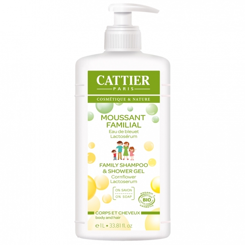 Grâce à l’extrait de saponaire, agent doux tonifiant et moussant, et aux propriétés moussantes d’un dérivé de coco le moussant familial Cattier nettoie en douceur corps et cheveux.