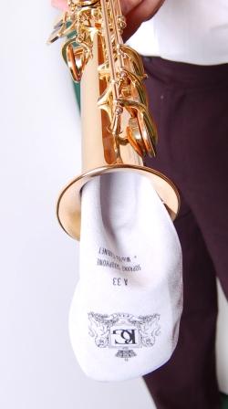 Écouvillon en microfibre pour saxophone soprano courbé.
