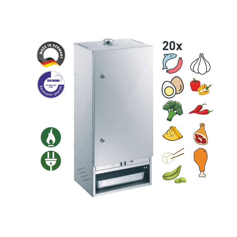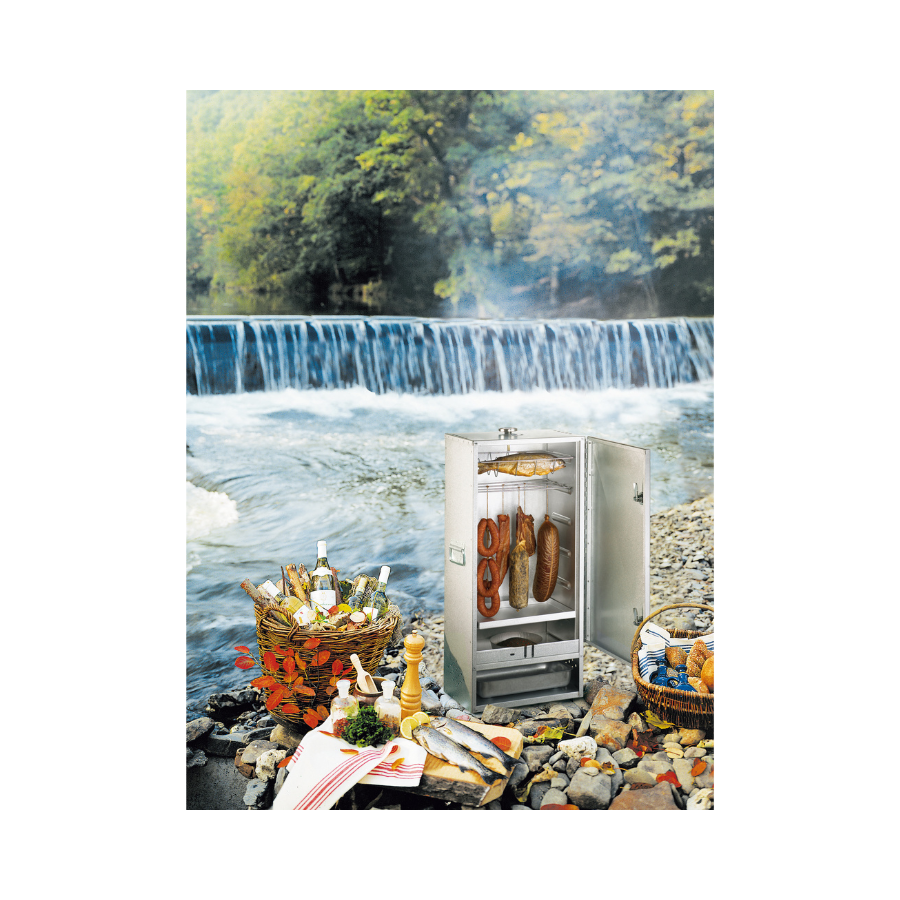 Fabriqué en Allemagne, ce fumoir à poser de 85cm de haut offre robustesse, durabilité et précision de fumage. Léger et doté d’une excellente conductivité thermique, il est facile à nettoyer à l’aide du nettoyant Peetz. Idéal pour le fumage à froid de poisson mais aussi le fumage à chaud de viande, il est possible de fumer de façon horizontale comme verticale avec ce fumoir armoire.