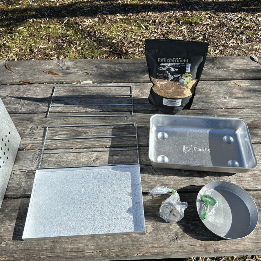 Le fumoir Peetz 85 est livré avec un kit complet comprenant des grilles de sustpension à crochets, un bac de réception de graisse, un bac à braise, un bac à sciure, 500g de de sciure et un thermomètre intégré pour un contrôle précis de la température. Vous avez tout ce dont vous avez besoin pour commencer votre aventure de fumage dès la réception de votre fumoir.