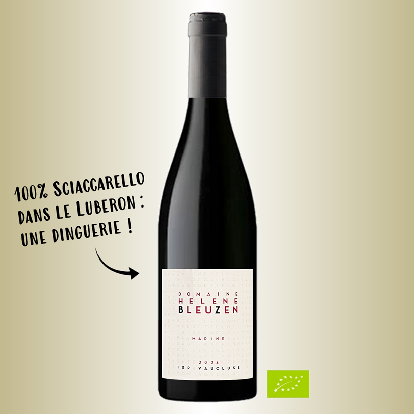 Enorme coup de cœur pour cette cuvée Marine 100% Sciaccarello d’Hélène Bleuzen entre Ventoux et Lubéron ! … La robe rubis très claire est aussi avenante que détonante pour la région. Le nez balaie la fraise des bois, la framboise sauvage, une touche de gingembre et quelques notes de poivre blanc. L’attaque en bouche est à la fois soyeuse et mordante, le fruité est croquant, l’acidité salivante. Un monde de finesse et d’élégance qui accompagnera merveilleusement la délicatesse d’un rôti de veau, des œufs meurette ou de la charcuterie (Corse de préférence). C’est une belle inspiration d’avoir planté du sciaccarello en Ventoux, et une grande réussite : bravo !