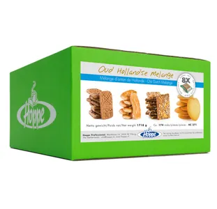 Deze melange is samengesteld uit een aantal typisch Hollandse klassiekers. Deze verpakking bevat acht handige vershoudverpakkingen, dus de koekjes zijn altijd vers. Deze mix bevat: een speculaas, een Jan Hagel, een roomboter krakeling en een roomboter biesje.