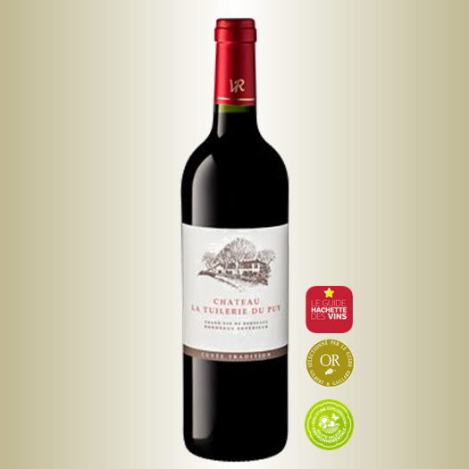 Le Bordeaux Supérieur Tradition de la Tuilerie du Puy brille d’abord par sa robre pourpre et ses reflets brillants. Au nez, l’évocation gourmande d’un panier de fruits rouges renforce le caractère avenant du vin. La bouche est à la fois souple et charnue, les tannins très délicats et la finale relativement persistante. Le rapport plaisir-prix est irréprochable.