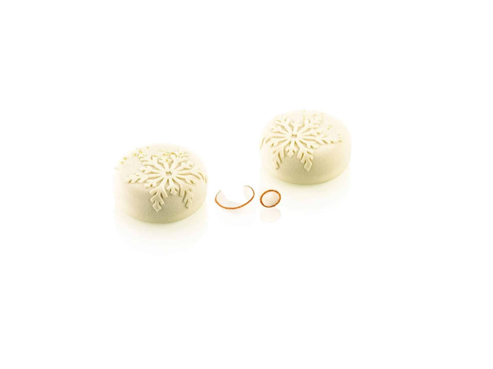 Moule Neve Flocons Silikomart en Silicone x6, de la gamme Silikomart Professionnal. La taille du moule est parfaite Ø 70 h 30 mm, une taille idéale pour des entremets individuels. Caractérisé ainsi par ça forme ronde bombée 3D orné d’un magnifique flocon de neige, pouvant être sublimé par un magnifique glaçage miroir mais aussi un parfait effet velours mat. Le moule en silicone convient pour le four, le réfrigérateur, il résiste à la congélation et il passe également au lave-vaisselle. Et supportent ainsi des températures allant de -60°C à +230°C. Conçu en silicone platinum qui permet d’excellents résultats de part ça souplesse, résistance, et flexibilité thermique,Il s’agit d’un matériau d’excellente qualité, conforme aux normes alimentaires européenne CE et internationale.