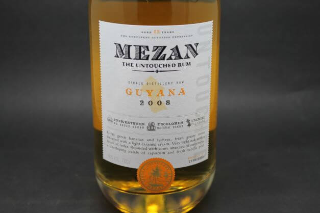 Mezan Guyana 2008 est un rhum de mélasse de 12 ans qui nous vient de l’unique distillerie du Pays : Demerara Distillers Limited. On nous indique que ce rhum a été distillé sur un double pot still en bois, ce qui nous amène au fameux alambic de l’ancienne plantation de Port Mourant.