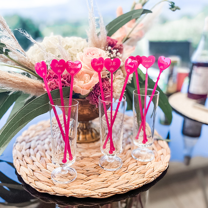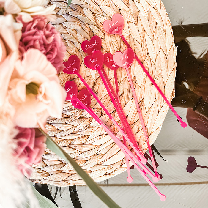 Touilleur marque verre en plexi avec prénom personnalisé gravé