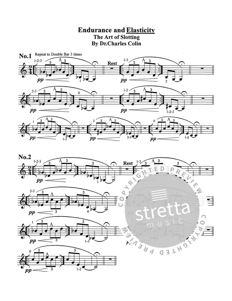 Sous-titré « L’art du slotting », ce merveilleux livre de Charles Colin va au-delà de la méthode de Clarke et comble le fossé entre la technique du souffle fraternel et le slotting parfait à la trompette. « Les principes de base de la respiration profonde et allongée sont bien exposés dans le volume 2 de la méthode d’Herbert L. Clarke. » Dit Colin, « ce sont les compétences de base qui permettent aux articulations de commencer avec un murmure pp et de se développer jusqu’à n’importe quel niveau dynamique décrit. C’est ici que la synchronisation du souffle avec le mouvement des pistons est la mieux développée. Une compétence complémentaire très nécessaire pour les musiciens de cuivres est le développement du trille des lèvres. Jamais forcé, il peut conduire à des arpèges d’une octave puis à une série dans une gamme de deux octaves. »
