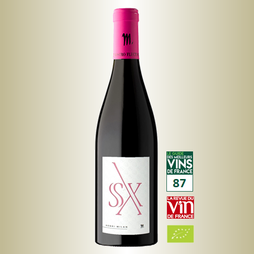 Henri Milan S&X est une cuvée 100% Grenache Noir provenant d’un vignoble de 1,2 ha planté en 1992.  Terroir d’éboulis calcaires, sur sous-sol frais de marne bleue. Vendanges manuelles. Rendement: 45 hl/ha. Macération courte de 5 jours en vendanges entières avec un écoulage en barrique. Inspiration brillante de Sébastien, le maître de chai. Certifié AB.