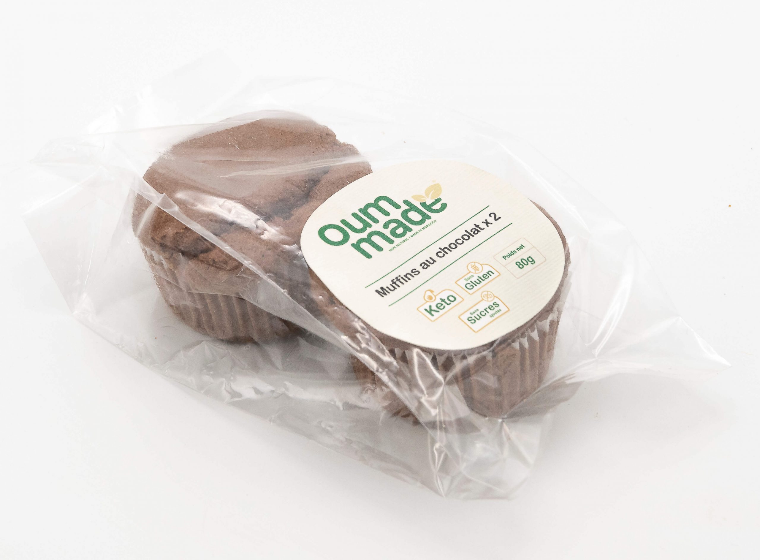 Poudre d’amande*, eyrthritol*, farine de noix de coco*, cacao maigre sans sucre*, poudre à lever sans gluten*, boisson d’amande sans sucre*, extrait de vanille liquide*, œufs, beurre, sel.